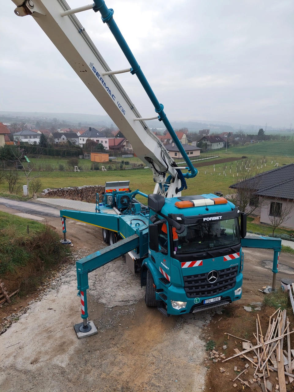 Vhodné pro realizaci zakázek s požadavkem na větší dosah ramene, nebo velký výkon čerpadla, vhodné pro čerpání betonu přes hadice, standartně tento stroj vozí 45 m hadic.