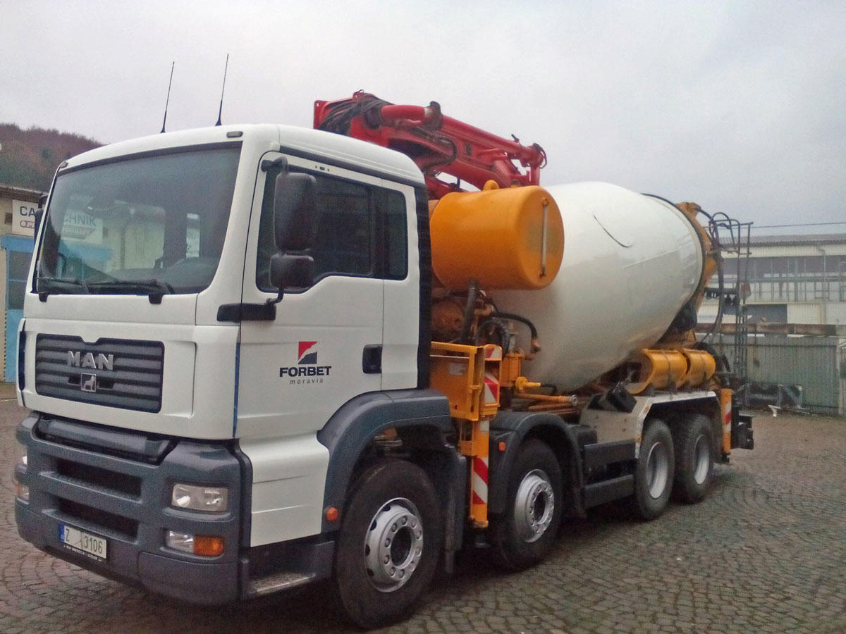 Tento model auta nabízí možnost nejen čerpání betonu s dosahem ramene až 28 metrů od vozidla,ale beton určený k čerpání si sám doveze až na místo Vašeho požadavku a objednávky. Spojení velice výkonného čerpadla a autodomíchavače v jeden stroj nabízí široké využití při betonování i poměrně složitých staveb.
